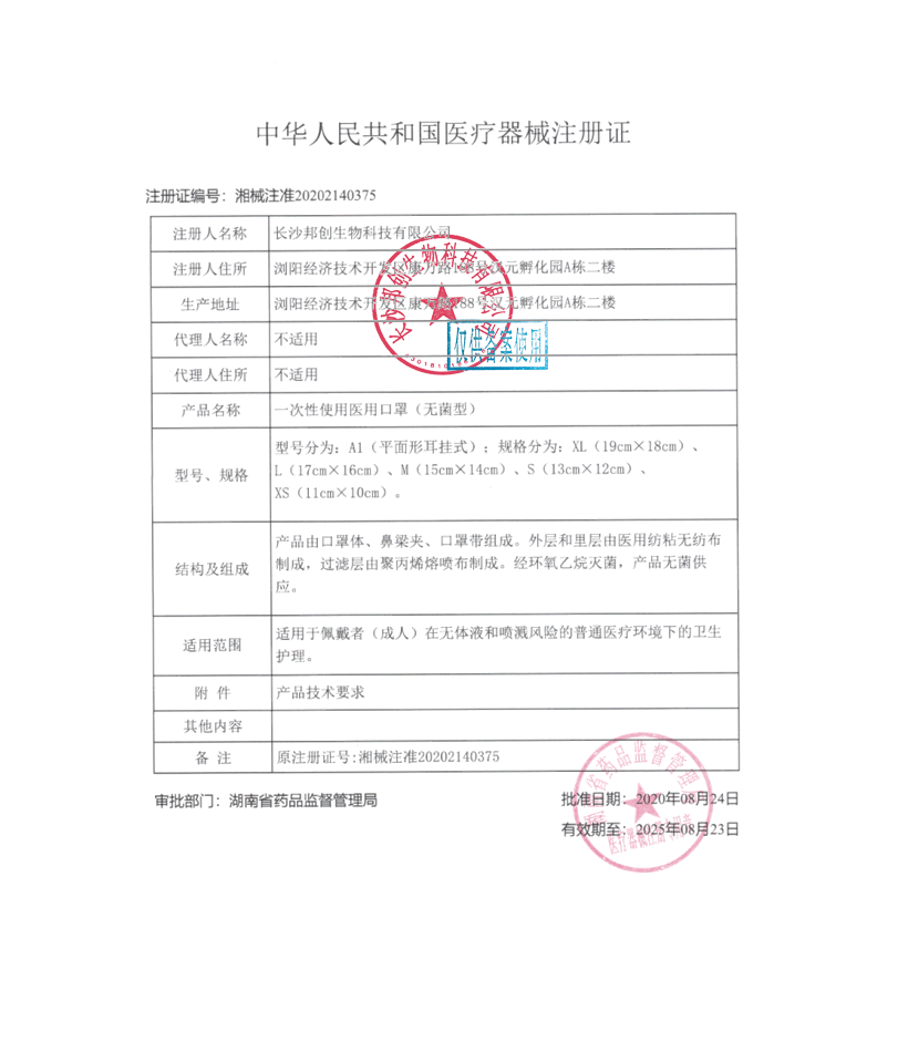 一次性使用醫(yī)用口罩口罩(無(wú)菌)--注冊(cè)證